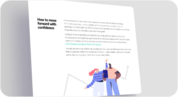 How to move These constraints make it even more important to show what the dollars are doing. forward with This is not a new story – we would advocate for it in good times and bad – but it is confidence especially important right now. When money is tight, operators are tempted to cut all forms of spending, but this often does more harm than good. Cutting all forms of spending can affect service levels and the customer experience. It increases the likelihood that experiences fail to meet expectations which can often cause customer frustration and churn. Across industries, bad experiences put a business at risk of losing an average of 9.5% of its revenue. Instead, operators should divert all unproductive, low-return spending towards investments that will generate a high incremental rate of return. In other words, invest where it counts and be able to justify your investments to key stakeholders.