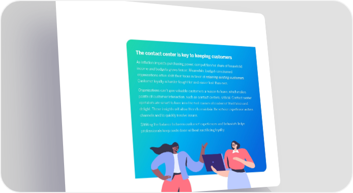 The contact center is key to keeping customers As inflation impacts purchasing power, competition for share of household income and budgets grows fiercer. Meanwhile, budget-constrained organizations often shift their focus in favor of retaining existing customers. Customer loyalty is harder fought for and easier lost than ever. Organizations can’t give valuable customers a reason to leave, which makes points of customer interaction, such as contact centers, critical. Contact center operators are smart to tune into the root causes of customer frustration and delight. These insights will allow them to maintain the service experience across channels and to quickly resolve issues. Striking the balance between customer experiences and behaviors helps professionals keep costs down without sacrificing loyalty.