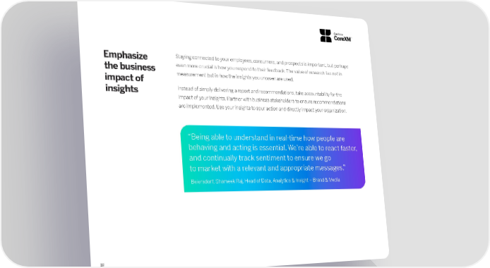 19 Emphasize the business impact of insights Staying connected to your employees, consumers, and prospects is important, but perhaps even more crucial is how you respond to their feedback. The value of research lies not in measurement but in how the insights you uncover are used. Instead of simply delivering a report and recommendations, take accountability for the impact of your insights. Partner with business stakeholders to ensure recommendations are implemented. Use your insights to spur action and directly impact your organization. “Being able to understand in real-time how people are behaving and acting is essential. We’re able to react faster, and continually track sentiment to ensure we go to market with a relevant and appropriate messages.” Beiersdorf, Shameek Raj, Head of Data, Analytics & Insight – Brand & Media