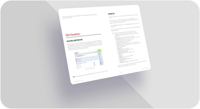 If you want a set number of questions per page throughout a survey, use the Questions Per Page option found under Look EDITING TEXT and Feel on the Edit Survey tab. To edit question or answer choice text, click directly on the question text and answer choice text to write in what you would like it to say. To customize the question text using HTML, click on the question and then click on the HTML View button above the question text field. The answer choice fields can receive HTML directly. If HTML isn’t your skill, the Rich Text Editor is also available, providing a toolbar of options for text formatting. To use the Rich Text Editor when editing question text, click the Rich Text Editor tab near the top left corner of the ques- tion text window. When you are done using the Rich Text Editor, click the gray space outside of the Rich Text Editor window and the changes Edit Questions will automatically be saved. When the Rich Text Editor is opened, there are buttons at the top that all serve a specific function: • {a} - Pipe in text from a question, panel, or embedded data field (first icon in the top row). SELECTING A QUESTION TYPE • Insert images into a survey or message from your graphics library. You can upload a graphic from this view as well. When you insert a question into a survey, the default question type is multiple choice. You can change the question type • Attach or link to files for respondents to download from surveys or messages. by selecting the question (it turns blue), then clicking the green Change Item Type button (Figure 3-5) to the right of the • Insert media into your survey, such as video or audio clips from a URL (film strip icon). You can also question in the blue column. When a question type is selected, the options in the question menu bar to the right adjust use the links from your Files Library and have Qualtrics host the media files. according to the question type you have selected. A detailed description of each Question Type and their accompanying • Insert special characters that you can’t find on your keyboard. options is given in the appendix following this chapter (Appendix 3a). • Insert a table in which you can then insert content. • Hyperlink a word or phrase (chain link icon), or remove a hyperlink (broken chain link icon). • Paste from Word without bringing in rogue code. Use this option to Copy and Paste text from Word without causing formatting issues. • Undo/Redo changes. • Align text left, center, right, and block justify. • Increase/decrease indent of text and numbering/bullet lists. • Insert Numbered and/or Bulleted Lists. • Remove formatting (eraser icon) from text you need to clean up. • Change font. • Change text size. • Format text with options to bold, italicize, and underline. • Use subscripts or superscripts. • Change text background color, or highlight text. • Change text color. Figure 3-5 Select a question type. • Use Source to view the HTML of the text being used and edit as needed The Rich Text Editor will appear through out the Research Suite whenever you need to draft a message or edit text. These same tools are available wherever you have access to the Rich Text Editor. ALERT: If you’ve already begun collecting responses, changing your question type could result in the loss of collected data. 32 | Chapter 3: Edit Your Survey Chapter 3: Edit Your Survey | 33