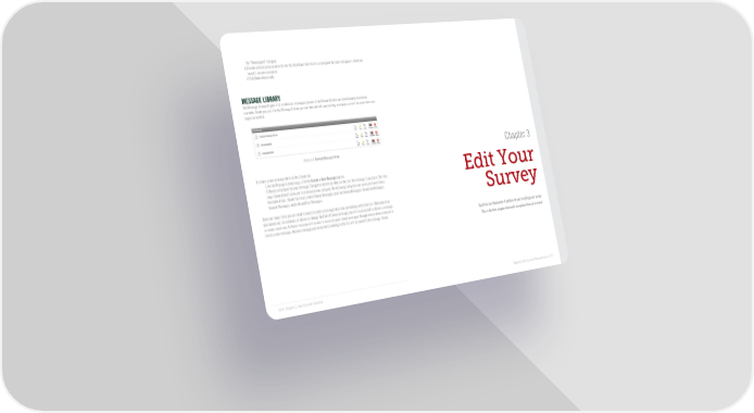 the “Unassigned” category. 4. Provide a Description or name for the file. By default the file will be assigned the name you gave it when you saved it on your computer. 5. Click Save when ready. MESSAGE LIBRARY The Message Library (Figure 2-5) is where all messages you use in the Research Suite are stored (survey invitation, reminder, thank you, etc.). In the Message Library you can find and edit any existing messages, as well as create new mes- sages as needed. Figure 2-5 Example Message Library Chapter 3 To create a new message while in the Library tab: 1. On the Message Library page, click the Create a New Message button. 2. Choose a Category for your message. Categories determine where in the tool the message is available. The mes- Edit Your sage library doesn’t allow you to create your own category. The following categories are available: Invite Email, Reminder Email, Thank You Email, End of Survey Messages, Inactive Survey Messages, Validation Messages, General Messages, and Look and Feel Messages. Survey There are many times you will need to insert or create a message while you are working within the tool. When you email your survey out, for instance, or choose to change the End of Survey message, you will be prompted to choose a message or create a new one. At these times you will be able to access to your library messages through a drop-down or choose to create a new message. Any new message you create while working in the tool will be saved to the message library. Qualtrics has thousands of options for you in editing your survey. This is the first chapter that seeks to explain them all in detail. 26 | Chapter 2: Your Account Libraries Qualtrics: The Complete Research Suite | 27