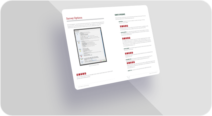 Survey Options SURVEY EXPERIENCE The Survey Experience options are mainly options that affect how the survey displays to the survey taker. Other options affect how respondents are able to Save and Continue the survey later. Next to the Look and Feel icon on the navigation bar is the Survey Options icon. The Survey Options page includes options Q-TIP -TIP for survey experience, protection, termination, and response rules This page is divided into six areas: Survey Experience, • BACK BUTTON: The Back Button option allows respondents to go back to previous pages in the survey. Survey Protection, Survey Termination, Inactive Surveys, Partial Completion, and Response Set (Figure 3-16). This option is disabled by default. Q - T I P Q - T I P This option can conflict with elements in the Survey Flow. If advanced elements (e.g., embedded data, branch) - T I P are in the Survey Flow between blocks, respondents will not be able to go back across those blocks. • SAVE AND CONTINUE: Uses a cookie stored on the respondent’s browser to keep track of how far in the survey Q-TIP -TIP the respondent has progressed. If the respondent exits the survey early, this option allows them to simply click the link to return to where they left off. Q - T I P P Q - T I This is machine and browser dependent. If someone starts the survey at work and then goes home to continue - T I P from a different machine, there won’t be a cookie for the tool to know where they left off and it will not start them where they left off. This option is designed for use with the Anonymous Survey Link (found in the Distrib- ute Survey tab) where no tracking is included. Save and Continue is not necessary when using the Authentica- tor or the unique link from the survey mailer. Q-TIP -TIP • SURVEY LANGUAGE: Choose the default language of your survey. This affects the display language of default error and end of survey messages. Q - T I P Q - T I P If you need multiple languages for your survey, try using the Translate Survey option in the Advanced Options - T I P menu (Edit Survey tab). Q-TIP -TIP -TIP Figure 3-16 Survey Options Window. • SHOW EXPORT TAGS: Specify if you want to show Export Tags to survey takers or not. Export Tags are the Q - T I P Q-TIP question numbers appearing at the top left corner of each question on the Edit Survey tab. Q - T I P Q - T I P Change Export Tags by clicking on them. Once selected, you can type in a different number or change the tag to Q - T I P - T I P a letter. Alternatively, you can use the Auto-Number Questions option in the Advanced Options menu (far right The most common settings are in place as the default. Be sure to double-check the Survey Options to make sure they fit side of the Edit Survey tab). - T I P your needs before distributing your survey. • SURVEY TITLE: Specify the title text that appears in the browser window/tab for your survey. 46 | Chapter 3: Edit Your Survey Chapter 3: Edit Your Survey | 47