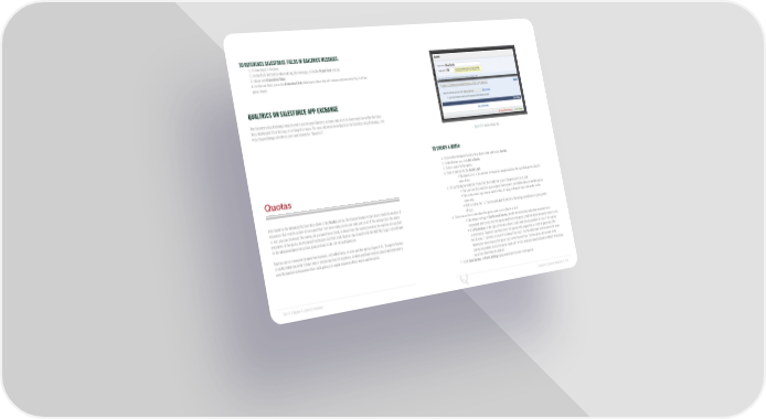 TO REFERENCE SALESFORCE FIELDS IN QUALTRICS MESSAGES: 1. Follow steps 1-4 above. 2. In the Rich Text Editor when editing the message, click the Piped Text icon {a}. 3. Hover over Embedded Data. 4. In the text field, paste the Embedded Data field name (from the left column referenced in Step 4 of the above steps). QUALTRICS ON SALESFORCE APP EXCHANGE The Salesforce App Exchange enables you to access your Qualtrics account and all of its functionalities within the Sales- force dashboard. It’s a free app to all Qualtrics users. For more information on Qualtrics for Salesforce App Exchange, visit http://appexchange.salesforce.com/ and search for “Qualtrics”. Figure 6-6 Quotas Dialog Box. TO CREATE A QUOTA: 1. Click on the Advanced Options drop-down menu and select Quotas. 2. In the Quotas box, click Add a Quota. 3. Enter a name for the quota. 4. Enter a number for the Quota Limit. • The Quota Limit is the number of responses required before the specified action (step 6) Quotas takes effect. 5. Set up the quota condition. Every time this condition is met, the quota will be tallied. • You can base the condition upon a question response, embedded data, or another quota. • This is the same logic box as used in Skip, Display, or Branch Logic and works in the Also found in the Advanced Options drop-down is the Quotas option. The Quotas feature allows you to track the number of same way. responses that match certain criteria and then limit how many people can take part or all of the survey. Once the quota • Shift+click on the “+” button adds And If, which is like using parentheses to group parts is met, you can terminate the survey, skip a question or block, or deactivate the survey based on the number of specified of logic. responses in the quota. As discussed in Chapter 4 of this book, Quotas can be used with the Add Skip Logic option found 6. Select an action to take when the quota count is met (Quota is full). in the advanced question options (purple Gear) to the left of each question. • The default setting is End Current Survey, which terminates the individual response for a respondent who comes into the survey and meets the quota condition after the quota count is met. Quotas can be measured by question response, embedded data, or even another quota (Figure 6-6). The quota feature • Click Customize to the right of the drop-down to edit what the respondent will see if the survey is useful when you wish to have only a certain number of responses, or when you have several groups and you want a is terminated. Qualtrics can deactivate the survey, hide a question or block of questions (“Do specific number of responses from each group (i.e. equal responses from males and females). Not Display...” options), or leave it to Survey Flow logic. See the additional section below for more information on setting up the quota logic in the Survey Flow. “Do the above action only if the current respondent meets the quota condition” will be available and checked by default if choosing an action other than the default. 7. Click Save Quotas, or Finish Editing if you would like to create more quotas. 110 | Chapter 6: Special Features Chapter 6: Special Features | 111