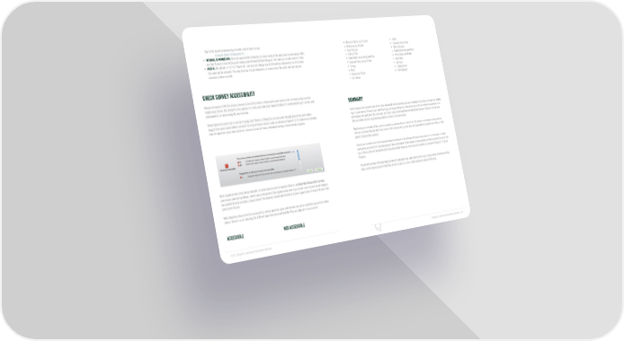 that block. Question numbering in each block restarts at one. • Multiple Choice, all 21 types • Slider Example: [Block #].[Question #]. • Matrix, except Bipolar • Constant Sum Slider • INTERNAL ID NUMBERING: Uses the question ID in Qualtrics to keep track of the questions in your survey. Odds • Text Entry, all • Matrix Bipolar are that if you’ve been editing your survey, your Internal ID Numbering will not end up in alpha-numeric order. • Side by Side • Rank Order Drag and Drop • PREFIX: The default is “Q” for “Question”, but you can change your prefix and use any number or letter there • Rank Order except Drag and Drop • Pick, Group, and Rank (no punctuation allowed). You may enter up to four characters, or even remove the prefix and just display • Constant Sum, except Slider • Heat Map numbers without a prefix. • Timing • Hot Spot • Meta • Sliding Scale • Descriptive Block • GAP Analysis • Drill Down CHECK SURVEY ACCESSIBILITY Known by many as 508 Compliance, survey accessibility refers to how usable your survey is for someone using a screen reader application. This feature’s sole purpose is to help you make your survey friendlier to screen reader applications, and SUMMARY subsequently, to those using the applications. Check Survey Accessibility is similar to using Spell Check. Clicking this option scans through your survey and makes In this chapter we covered some of the more advanced survey building options, including the options you have for adding suggestions about areas where accessibility improvements can be made, as shown in Figure 4-12. It makes recommenda- logic to your survey. Display Logic and Skip Logic are super handy tools that allow you to dictate which respondents see tions for question types and options to improve access for those individuals using a screen reader program. which questions and when. We also went into detail about the Carry Forward and Default Answer Choices options and their use when customizing how respondents interact with your survey. Additionally, we introduced the option to randomize answer choices. In the tool, the system can randomize the answer choices to prevent display order bias. Later in this book we will go over how you can randomize questions within a block and/or blocks within a survey. Finally, we covered some of the advanced functions found in the Advanced Options drop-down. It is important to check your survey accessibility if you know you will have respondents that require screen readers or other accessibility tools. The rest of the options in the Advanced Options drop-down menu are more specialized and are covered in Chapter 5, Special Figure 4-12 Check Survey Accessibility in action. Features. You should now have the knowledge you need to add questions and sophisticated logic to your survey. If you master the ideas in this chapter, you will find that you will be able to collect useful data with greater efficiency. Most organizations allow survey builders to create non-accessible surveys. There is an Allow Non-Accessible Surveys permission enabled by default, which can be disabled at the organization, user type, or user level. If permission changes are needed for your account, please contact the Qualtrics brand administrator at your organization to enable/disable that permission for you. While Qualtrics does strive for accessibility, certain question types and formats are better suited for accessibility than others. Below is a list showing the different question types and whether they are judged to be accessible. ACCESSIBLE NOT ACCESSIBLE 70 | Chapter 4: Advanced Question Options Chapter 4: Advanced Question Options | 71