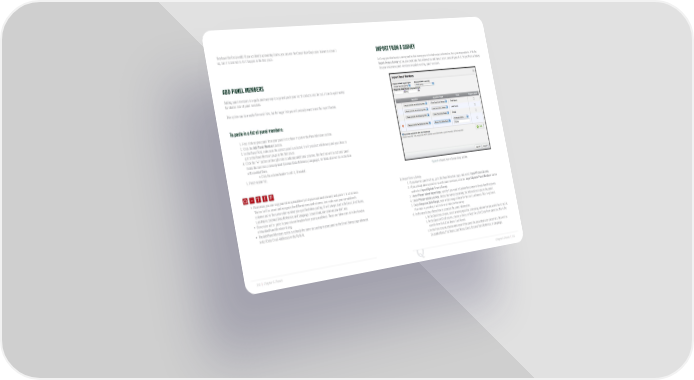 they have the RecipientID. If you accidently upload duplicates, you can use the Consolidate Duplicates feature to clean it IMPORT FROM A SURVEY up, but it is best not to let it happen in the first place. Let’s say you distributed a survey and in that survey you collected contact information from your respondents. With the Import From a Survey option, you could take that information and turn it into a panel (Figure 8-5). Import From a Survey lets you create new panel members or update existing panel members. ADD PANEL MEMBERS Adding panel members is a quick and easy way to copy and paste your list of contacts into the tool. It can be quite useful for shorter lists of panel members. This option can be a useful for small lists, but for larger lists you will probably want to use the import feature. To paste in a list of panel members: 1. First click on your panel from your panel list to have it open in the Panel Members section. 2. Click the Add Panel Members button. 3. In the Panel field, make sure the correct panel is selected. It will preselect whichever panel you chose to get to the Panel Members page in the first place. 4. Click the “+” button on the right side to add any additional columns. The first two will be optional panel fields that are less commonly used (External Data Reference, Language). All fields after will be in the form of Embedded Data. • Click the column header to edit it, if needed. Q-TIP -TIP 5. Paste in your list. Figure 8-5 Import From a Survey dialog window. Q - T I P Q - T I P To Import From a Survey: • Remember, you can copy your entire spreadsheet (all of your rows and columns) and paste it in all at once. 1. If you have no panels set up, go to the Panel Members page, and select Import From a Survey. - T I P 2. If you already have a panel set up with panel members, click the Import/Update Panel Members button The tool will be smart and recognize the different rows and columns. Just make sure your spreadsheet’s and select Import/Update From a Survey. columns are in the same order as what you specified when pasting. It will always start with Email, First Name, 3. Under Please select import type, specify if you want to Update Recipients or Create New Recipients. Last Name, External Data Reference, and Language. Leave blank any columns you don’t use. 4. Under Please select a survey, choose the survey containing the information to use in the panel. • Remember not to paste in your column headers from your spreadsheet. Those are taken care of in the headers 5. Under Response Date Range, enter a date range of data for the tool to reference. This is optional. of the Add Panel Members dialog. If no date is provided, it will look at all data for the survey. • The Add Panel Members option is actually the same as pasting in your panel on the Email Survey page when you 6. In the area below, choose how to populate the panel information. select Enter Email Addresses in the To field. a. In the Questions column, select a survey question containing information you would like to pull in. b. In the Question Field column, choose a choice or field. On a Text Entry Form question, this is the specific form field (First Name, Last Name). c. In the Field column, choose what area of the panel the data should be placed into. This will be Embedded Data, First Name, Last Name, Email, External Data Reference, or Language. 150 | Chapter 8: Panels Chapter 8: Panels | 151